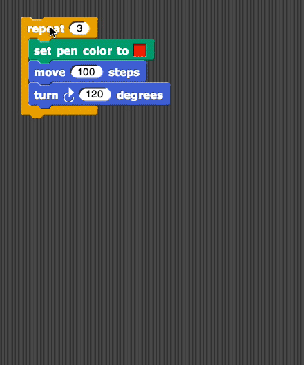 Let's make a more complex fractal design. Start by building a script to draw a red triangle. You can reuse your script from earlier.