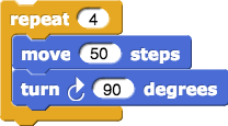 Insert the entire script for the blue triangle between the move and turn blocks of the red triangle. The video below shows how.